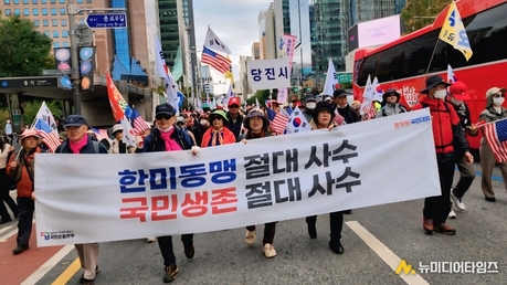 대한민국바로세우기국민운동본부(대국본)가 주최한 ‘광화문 국민대회’가 11월 1일(토) 오후 1시 서울 광화문 이승만광장에서 성황리에 열렸다. 이날 당진 지역에서도 약 30여 명의 애국국민들이 자발적으로 상경해 집회와 도심 행진 전 구간을 함께하며 강한 결속력을 보여줬다. 이들은 오전 일찍 차량편으로 당진을 출발해 광화문 현장에 도착, ‘윤석열 전 대통령 지지’와 ‘대한민국 자유 수호’를 외치는 시민들과 함께했다. 현장에는 주최 측 추산 약 10만여 명이 모여 광장을 가득 메웠으며, 집회 내내 질서정연한 분위기 속에서 자유와 정의를 강조하는 발언이 이어졌다. 주 연사로 나선 전광훈 국민혁명의장은 “윤석열 전 대통령은 반드시 돌아올 것이며 정의로운 판결이 머지않았다”고 선언하며 “신앙과 자유의 가치로 대한민국을 다시 세워야 한다”고 호소했다. 이날 당진 참석자들은 “정치적 혼란 속에서도 믿음을 지키는 국민이 되어야 한다”며 “서울 한복판에서 자유대한민국을 외치는 그 순간이 감격스러웠다”고 소감을 전했다. 또 “광화문 현장에서 느낀 시민의 힘과 연대의식이 지역 사회에도 확산되길 바란다”고 밝혔다. 행사는 오후 3시 50분경 마무리 집회를 끝으로 도심 행진으