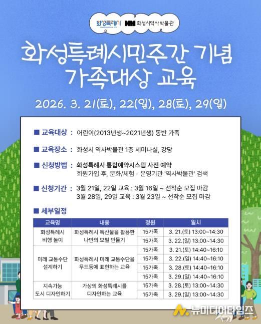 화성시 역사박물관이 화성특례시민주간을 기념해 3월 21일과 22일, 28일, 29일 총 4일간 주말 교육 프로그램과 사회관계망서비스(SNS) 이벤트를 운영한다. 이번 행사는 시민들이 화성의 지리와 환경을 이해하고 미래 도시의 모습을 창의적으로 그려볼 수 있는 기회를 제공하고자 마련됐다.