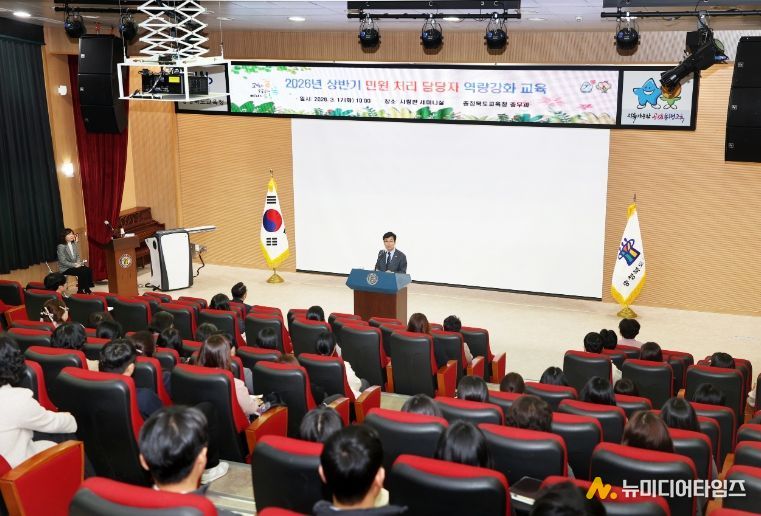충청북도교육청은 17일, 본청 사랑관 1층 세미나실에서 본청 직원과 직속기관, 교육지원청 및 청주지역 고등(특수)학교 민원 담당자를 대상으로 민원인 정보보호 의식 제고와 민원 응대 역량 강화를 위한 교육을 실시했다.