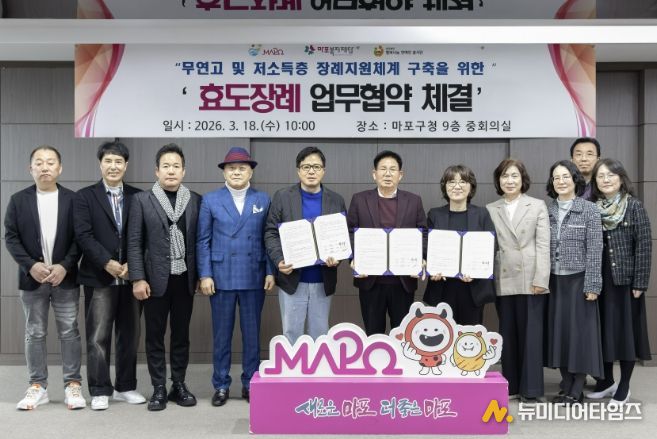 이를 위해 3월 18일 마포구는 민관 협력 기반의 장례 지원체계를 구축하고자 마포복지재단, (사)행복나눔 연예인봉사단과의 업무 협약식을 열었다.
