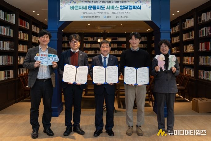 충북 증평군은 19일 군청 기록관에서 대한물리치료사협회 충북도회(회장 정강훈), ㈜헬스앤워크(대표 강철진)와 통합돌봄 지역특화사업 ‘바른자세 운동지도 서비스’ 추진을 위한 업무협약을 체결했다.