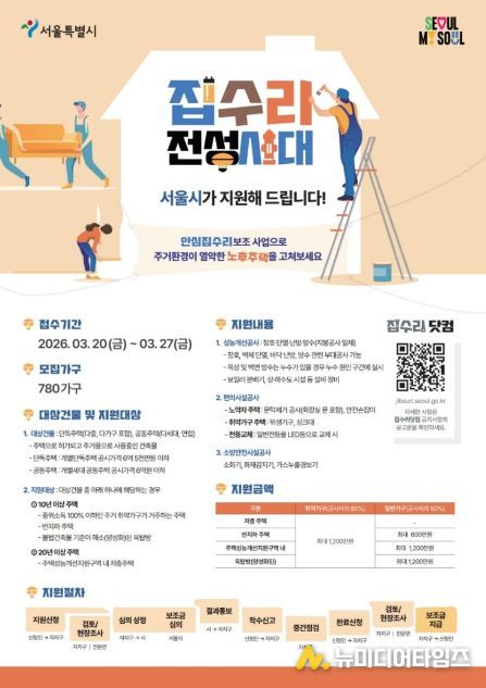 영등포구가 노후주택 거주자의 주거환경 개선을 위해 집수리 비용을 지원하는 ‘2026년 안심 집수리 보조사업’ 참여자를 20일부터 27일까지 모집한다고 밝혔다.