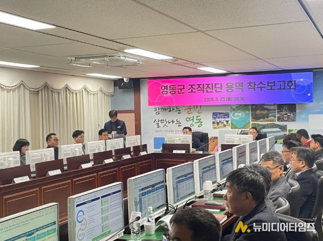 군은 23일 군청 상황실에서 군수와 부군수, 간부 공무원, 용역 수행기관인 ㈜중앙경영연구원 관계자 등이 참석한 가운데 ‘영동군 조직진단 용역 착수보고회’를 열었다.