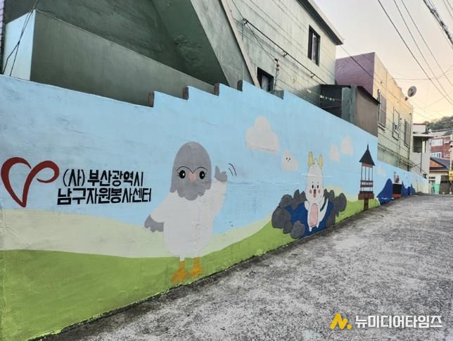 (사)부산남구자원봉사센터와 부경대 벽화봉사단 ‘절영회’는 지난 3월 22일 남구 신선로337번길 17-20 일원 담벼락에서 ‘붓끝으로 그리는 세상’ 사업을 진행하며 지역의 오래된 담벼락 약 30미터 구간에 생동감 있는 벽화를 조성했다고 밝혔다.