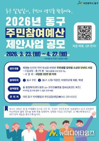대전 동구는 2026년 주민참여예산 제안사업을 본격 추진하며, 내달 27일까지 공모 접수를 실시한다고 24일 밝혔다.