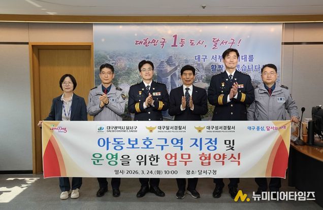 대구 달서구는 아동이 안전하게 생활할 수 있는 환경 조성을 위해 24일 달서경찰서, 성서경찰서와 '아동보호구역 지정 및 안전강화를 위한 업무협약'을 체결했다.