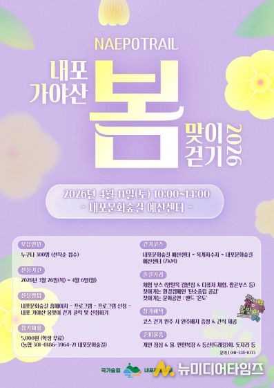 충남도는 4월 11일 예산군 덕산도립공원 일원에서 진행하는 ‘2026 내포 가야산 봄맞이 걷기’ 행사 신청서를 접수 중이라고 26일 밝혔다.