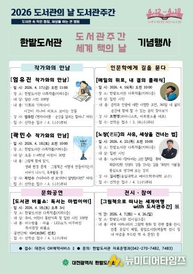 자세한 일정과 세부 내용은 한밭도서관 누리집을 참고하거나, 한밭도서관 자료운영과로 문의하면 된다.