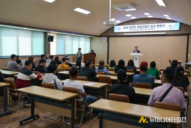 군은 26일 매포읍 단양군 농업인복지회관에서 계절근로자와 고용주, 초청인이 함께한 가운데 입국 환영 및 교육 행사를 개최했다.