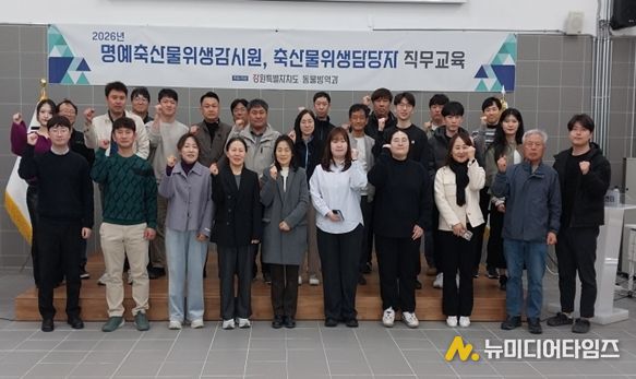 강원특별자치도는 3월 26일 강릉시 사천면 반려동물지원센터에서 도내 명예축산물위생감시원(이하 명예감시원)과 시군 축산물 위생 담당 공무원을 대상으로 ‘2026년 상반기 직무교육’을 실시했다.