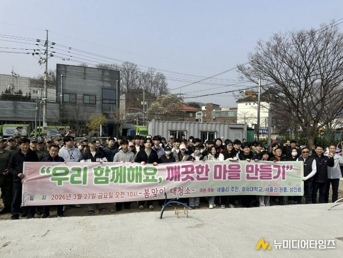 세출리 마을 청소는 홍성만 이장이 2022년부터 5년째 주도적으로 이끌어 온 활동으로, 환경 개선과 주민 화합을 도모하기 위해 매년 실시하고 있다. 이번 활동에서는 호서대학교 아산캠퍼스 정문 및 원룸촌을 따라 흐르는 세출천을 중점적으로 정비하며 지역민과 학생이 함께 공동체 의식을 다지는 시간이 됐다.