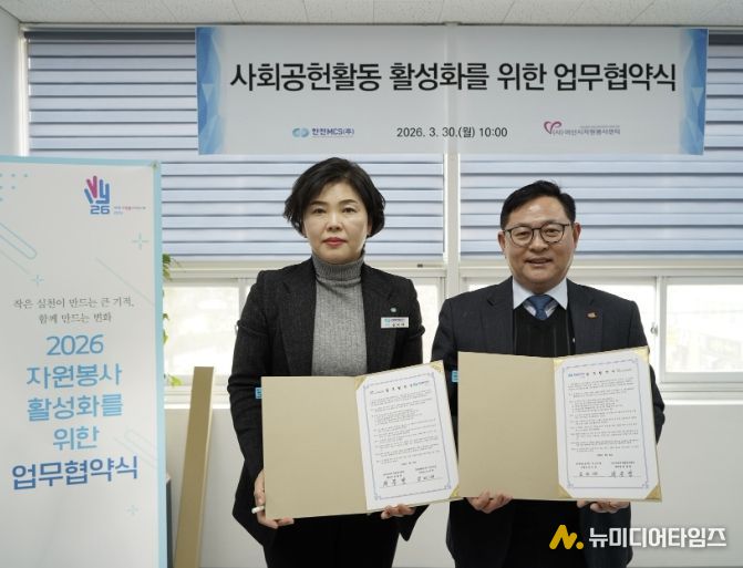 (사)아산시자원봉사센터와 한전MCS(주) 아산지점은 30일 지역사회 문제 해결과 자원봉사 가치 확산을 위해 업무협약(MOU)을 체결했다고 밝혔다.