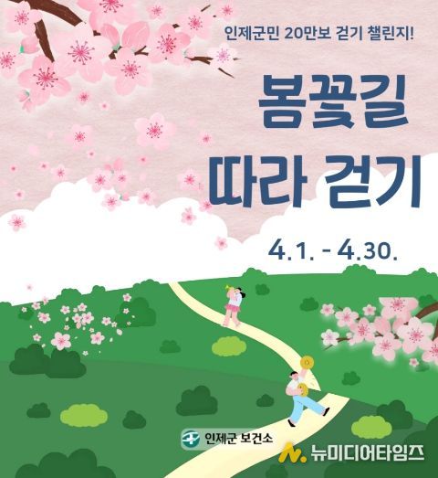 인제군이 군민의 일상 속 걷기 실천을 확산하고 건강한 생활문화를 만들기 위해 4월 1일부터 4월 30일까지 ‘4월 한달 간 20만보 걷기챌린지’를 운영한다.