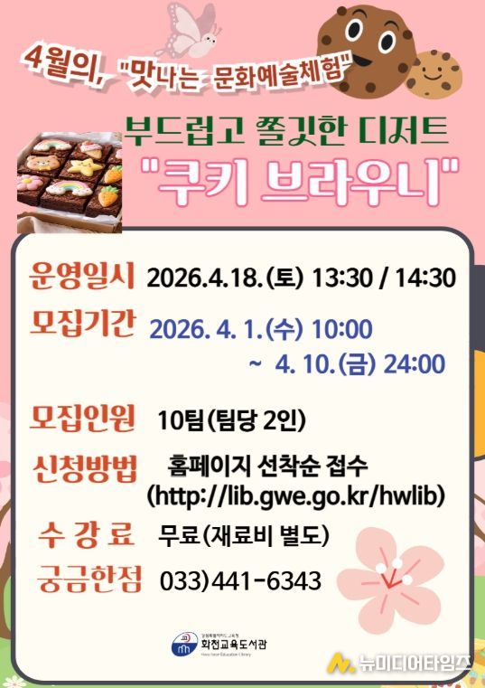 화천교육도서관은 지역주민을 대상으로 4월부터 11월까지 평생학습 주말 특강 ‘맛과 멋으로 함께하는 문화예술체험’을 운영한다.