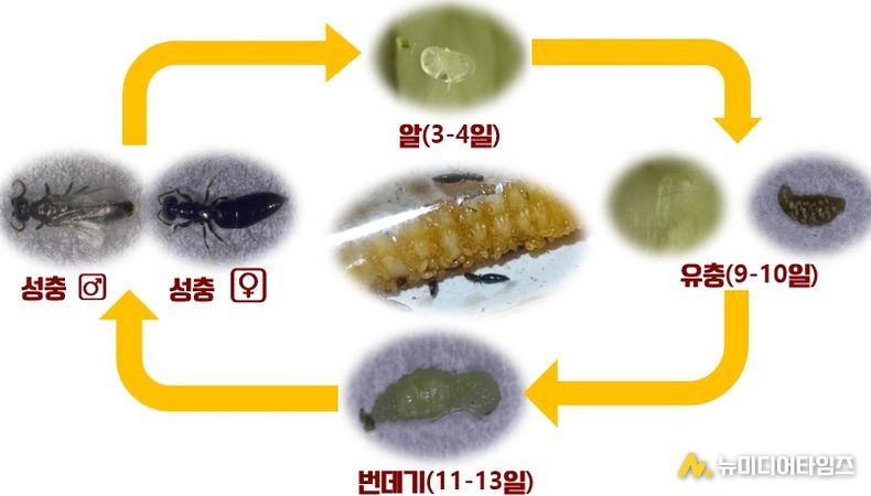 그 결과, 생산기간과 비용면에서 효율적인 우수 기주를 선발하는데 성공했으며, 앞으로 개미침벌의 저온저장 기술과 적정 사육 밀도 시험을 거쳐 지역 농업기술센터와 함께 현장실증을 진행할 예정이다.
