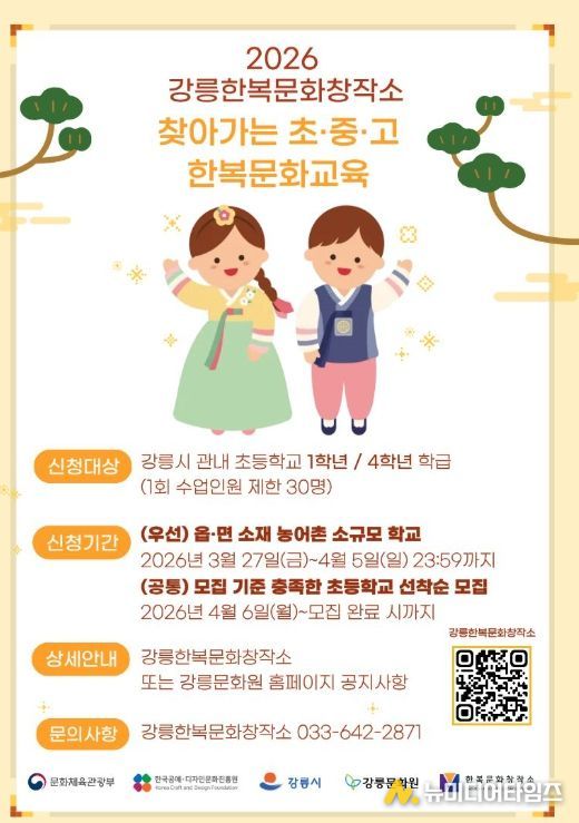강릉한복문화창작소는 2026 찾아가는 초중고 한복문화 교육에 참여할 초등학교를 모집한다.
