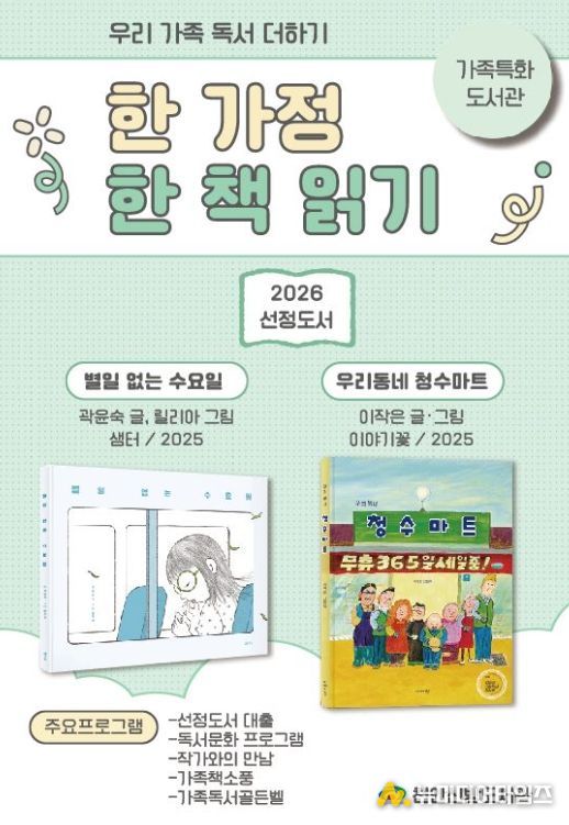 올해의 ‘한 책’은 시민 투표와 가족으로 구성된 한 책 선정단의 투표를 거쳐 곽윤숙 작가의 ‘별일 없는 수요일’, 이작은 작가의 ‘우리동네 청수마트’가 선정됐다.