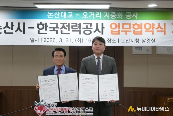 논산시는 31일 시청 상황실에서 한국전력공사(KEPCO)와 ‘논산대교~오거리 전주 지중화 사업’ 추진을 위한 업무협약을 체결했다.