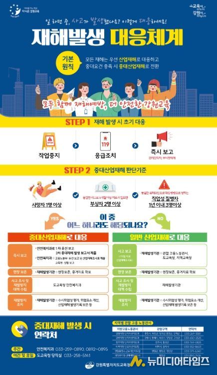 김명복 안전복지과장은 “중대산업재해는 산업재해를 기반으로 판단되는 만큼, 평소 대응 절차를 숙지하는 것이 무엇보다 중요하다”며, “이번 포스터가 교육현장에서 재해 대응 요령을 쉽게 이해하고 실천하는 데 도움이 되기를 바란다”고 밝혔다.