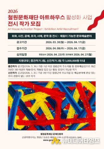 (재)철원문화재단은 2026년 아트하우스 전시에 참여할 작가를 오는 4월 8일부터 17일까지 공개 모집한다.