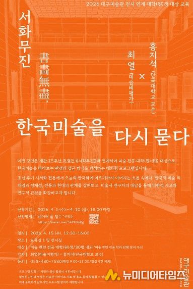 대구미술관 관계자는 “이번 프로그램은 전시를 기반으로 한국미술을 바라보는 다양한 관점과 해석을 공유하는 자리로, 전공자들을 위한 심화 교육을 통해 한국미술을 바라보는 시각을 확장하는 계기가 될 것으로 기대한다”고 말했다.