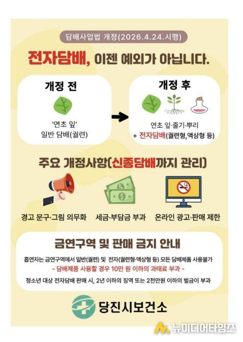 당진시는‘담배사업법’ 개정 시행으로 액상형 전자담배도 규제 대상에 포함돼 흡연자들의 주의를 당부했다.