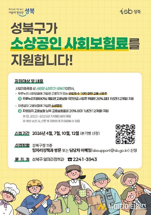 서울 성북구가 4월 13일부터 17일까지 2026년 '성북구 소상공인 사회보험료 지원사업' 1분기 신청 접수를 진행한다.