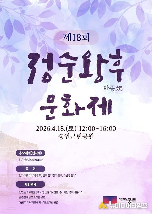 왕을 잃고도 자리를 지켰던 왕비의 시간이 동망봉에서 다시 흐른다. 종로구(구청장 정문헌)는 4월 18일 12시부터 16시까지 숭인근린공원에서 '정순왕후문화제'를 연다.