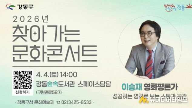 이수희 강동구청장은 “영화라는 친숙한 주제를 통해 소통과 공감의 가치를 자연스럽게 느끼는 시간이 되길 바란다”라며 “앞으로도 구민의 일상에 스며드는 인문·예술 프로그램을 지속적으로 확대해 나가겠다”라고 밝혔다.