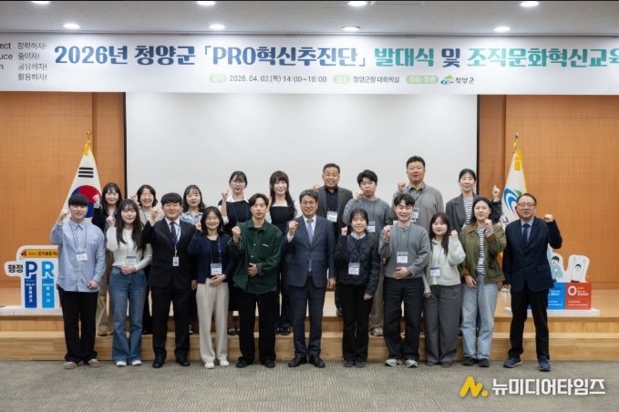 군은 지난 2일 군청 대회의실에서 김돈곤 군수 주재로 ‘2026년 청양군 PRO혁신추진단 발대식’을 개최하고, 조직 내 다양한 구성원이 참여하는 협업 기반 혁신 활동을 본격화할 것임을 밝혔다.
