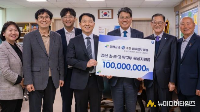군은 지난 1일 애경산업(주)이 정산 초·중·고등학교 탁구부 육성을 위한 장학금 1억 원을 기탁했다고 밝혔다.
