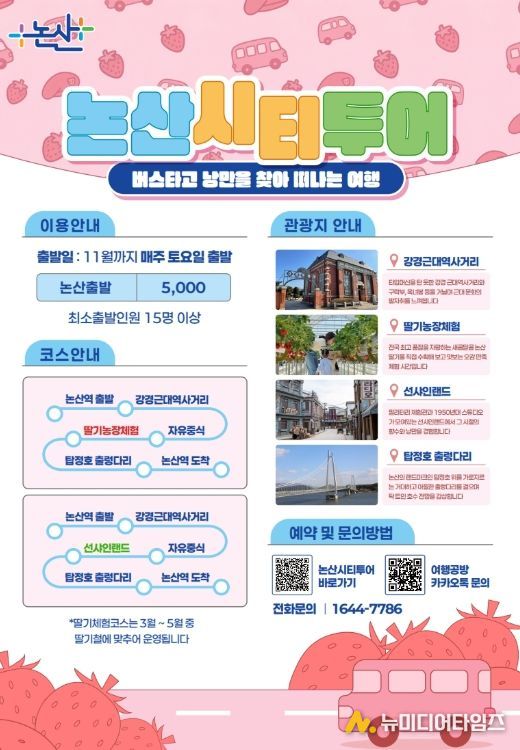 시 관계자는 “시티투어버스는 논산의 핵심 명소를 한 번에 즐기고, 새로운 재미와 감동을 동시에 느낄 수 있는 여행 프로그램”이라며 “추억과 낭만이 있는 논산의 매력을 충분히 느끼고 가실 수 있도록 차질없이 준비하겠다”고 말했다.