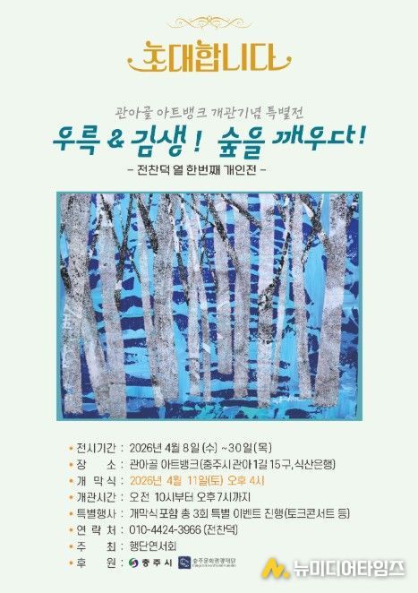 한편, 전찬덕 작가는 충주문화원장을 역임하고 깃발 서예전, 담장의 향기전 등 다양한 기획전을 통해 지역 문화예술 발전에 기여해 온 중견 예술가다.
