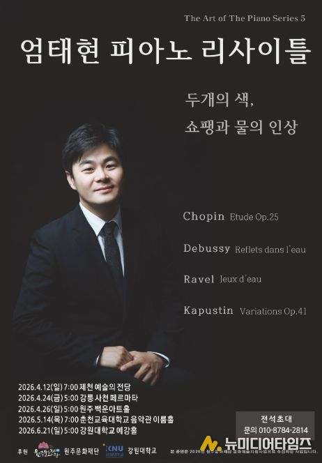 제천 출신 피아니스트 엄태현 피아노 리사이틀이 오는 4월 12일 7시 제천 예술의 전당에서 열린다.