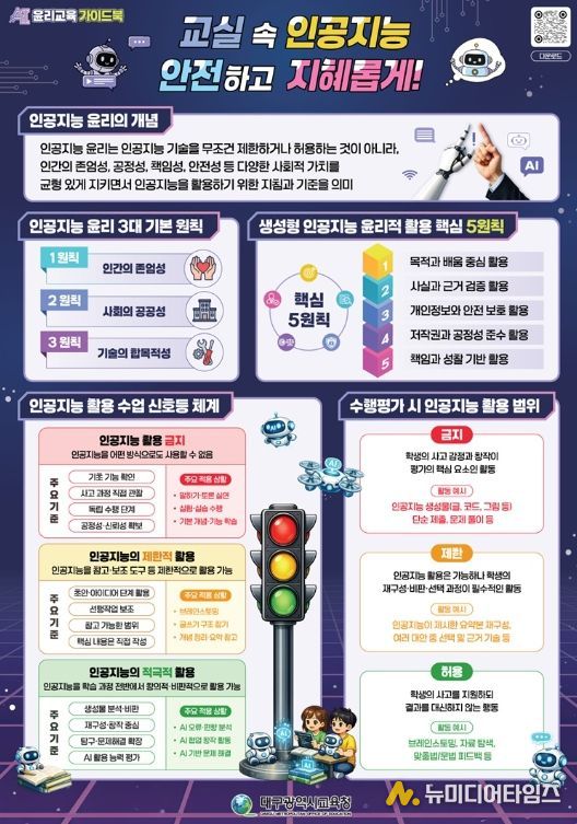 대구시교육청은 인공지능(AI) 기술이 일상과 교육 전반에 빠르게 확산되는 환경 속에서, 학생들이 기술을 올바르고 책임 있게 활용할 수 있도록 지원하기 위해‘AI 윤리교육 가이드북’과 ‘범교과 SW·AI 디지털 시민윤리 교수∙학습자료’를 개발해 학교 현장에 보급한다.