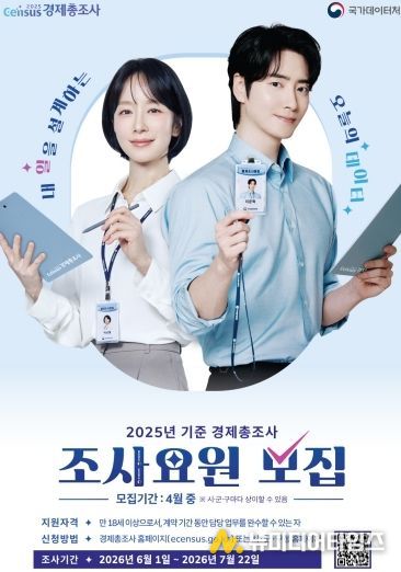 한편, 경제총조사는 전국 사업체를 대상으로 오는 6월 1일부터 7월 22일까지 실시하며, 6월 1일부터 6월 30일까지 조사원 방문이 시작되기 전에 인터넷 조사를 통해 참여할 수 있다. 이후 6월 12일부터 7월 22일까지 인터넷 조사에 참여하지 않은 사업체를 대상으로 조사원이 직접 방문하는 현장조사가 진행될 예정이다.