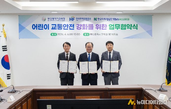 부산광역시교육청은 지난 6일 오후 시교육청 회의실에서 어린이 교통사고 예방과 안전한 통학환경 조성을 위해 한국주택금융공사, 한국도로교통공단 tbn부산교통방송과 ‘어린이 교통안전 강화를 위한 업무 협약’을 체결했다.