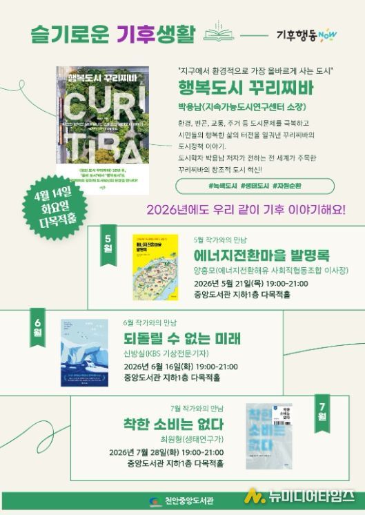 천안시 중앙도서관은 오는 7월까지 ‘슬기로운 기후 생활’을 운영한다고 7일 밝혔다.