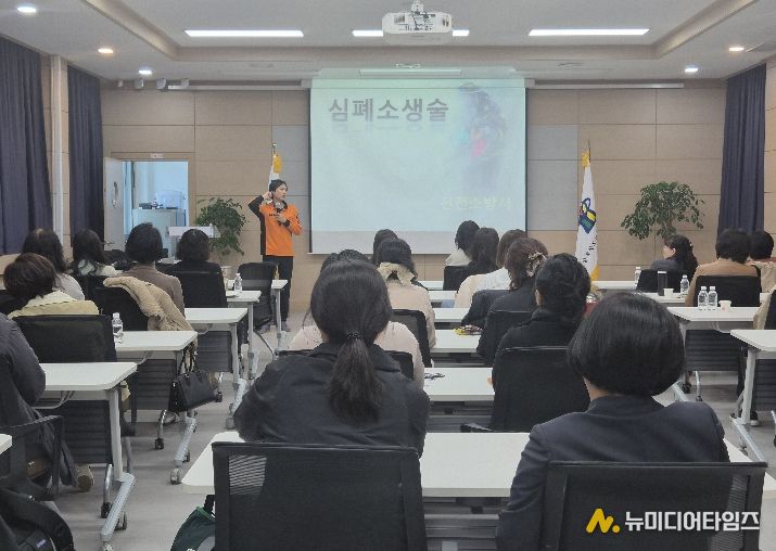 이번 연수는 돌봄 현장의 위기대응능력 향상을 목적으로, 진천소방서 이승민 소방장을 강사로 초빙해 성인․소아 심폐소생술, 기도폐쇄 응급처치, 내․외과적 손상 대처법, 응급상황 발생 시 행동요령 등 현장에서 즉각 활용 가능한 실습 중심의 교육으로 진행됐다.