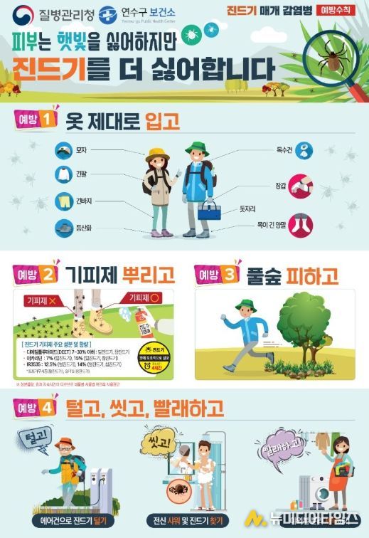 연수구는 봄철 농작업, 등산, 캠핑 등 야외 활동이 많아지는 시기를 맞아 ‘진드기 매개 감염병’에 대한 각별한 주의를 당부했다.