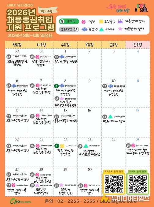 이와 함께 시는 취업을 희망하는 서울 거주 전 연령(청년·취약계층·중장년·시니어) 4,500명을 대상으로, 채용 연계를 핵심으로 한 맞춤형 취업지원 프로그램을 4월부터 운영한다.
