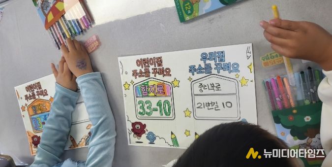 특히 색칠놀이 활동에서는 원아들이 직접 자신이 다니는 어린이집과 우리 집의 건물번호판을 꾸미며 주소에 대한 친근감을 높였다.