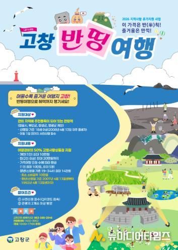 고창군이 문화체육관광부와 한국관광공사 주관의 ‘2026 지역사랑 휴가지원 시범사업’ 에 전북에서 유일하게 선정되며, 체류형 관광 활성화와 지역경제 선순환을 위한 ‘고창반띵여행’을 본격 추진한다.
