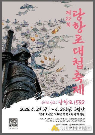 고성문화관광재단은'승리의 암호: 당항포 1592'주제로 제22회 당항포대첩축제를 오는 4월 24일부터 26일까지 3일간 개최한다고 밝혔다.