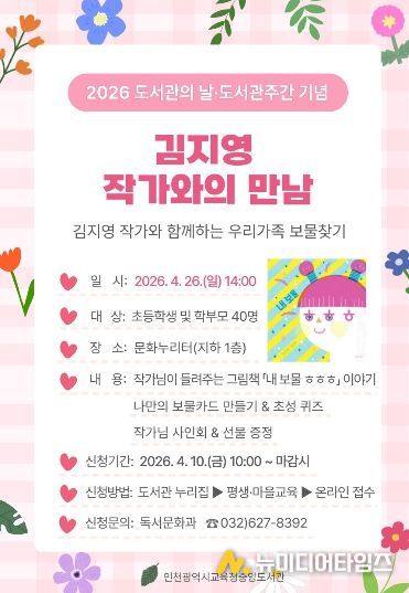 인천광역시교육청중앙도서관은 오는 26일, 초등학교 저학년 어린이와 가족을 대상으로 김지영 그림책 작가와의 만남을 운영한다.