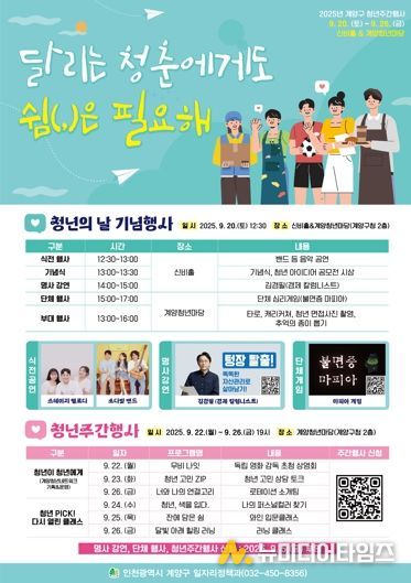 인천광역시 계양구는 청년의 날(9월 셋째 주 토요일)을 맞아, 오는 9월 20일부터 26일까지 청년주간행사를 운영한다고 밝혔다.