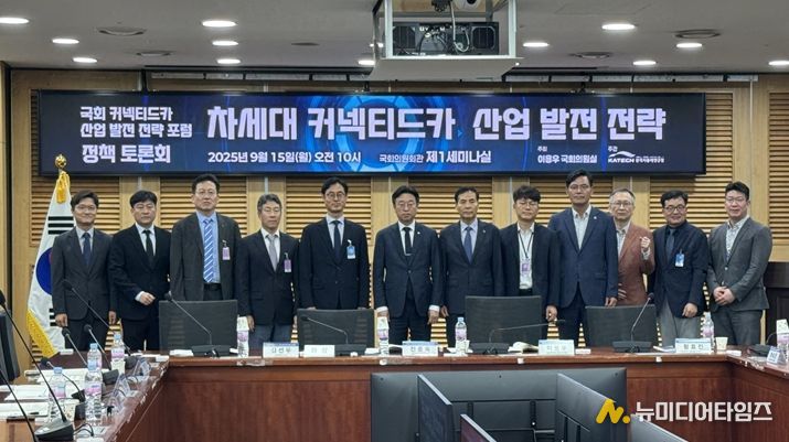 차세대 ‘커넥티드카’ 산업발전 전략 정책 토론회가 9월 15일 국회의원회관 세미나실에서 개최됐다. 이번 토론회는 한국자동차연구원 주관으로 열렸으며 이용우 국회의원과 황효진 글로벌도시정무부시장 등 주요 인사들이 참석한 가운데 진행됐다.