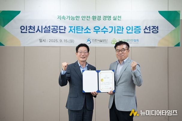 인천시설공단은 15일, 도시재생안전협회(협회장 한제영)로부터 공공부문 저탄소·친환경 경영 선도 노력을 인정받아 ‘저탄소 우수기관 인증’을 획득했다.