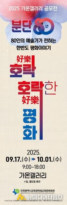 인천광역시교육청학생교육문화회관은 9월 17일부터 10월 1일까지 가온갤러리에서 ‘분단 80년, 80인의 예술가가 전하는 한반도 평화 이야기 - 호락(好樂) 호락(好樂)한 평화’ 전시회를 개최한다.