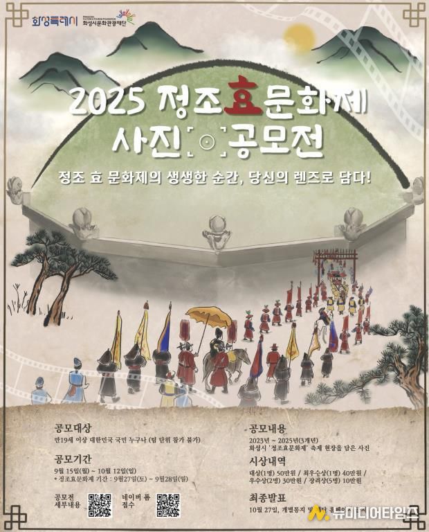 화성시문화관광재단은 화성시 대표 축제인 ‘정조 효 문화제’에 대한 관심도 확산과 축제 현장의 감동과 재미를 생생히 알리고자 '2025 정조효문화제 사진공모전'을 개최한다.